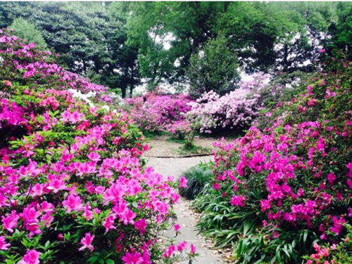 武汉植物园杜鹃园模拟野生杜鹃生长环境,依据坡地落差分类种植高山、亚高山杜鹃。收集有羊踯躅、露珠杜鹃、毛鹃、夏鹃、马缨杜鹃等杜鹃,数量达5万余株,品种十分丰富,达200种之多。