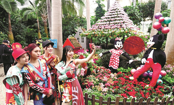 兰展的入口处,一面《猫和老鼠》的动漫墙,吸引了许多游客关注。为迎接鼠年到来,园方特意集结了动漫中的各种“鼠”:猫和老鼠在蝴蝶兰花道上追逐,舒克开着飞机在蕨类植物和石斛兰文心兰的上空盘旋,米老鼠在大花蕙兰和卡特兰花海中建起了童话小屋……