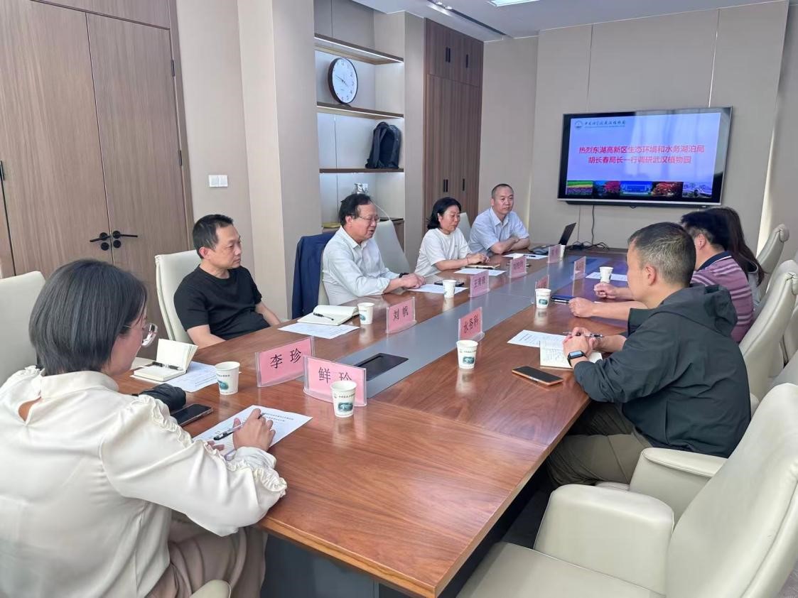5月12日,东湖高新区生态环境和水务湖泊局局长胡长春一行三人调研武汉植物园。武汉植物园主任王青锋、相关学科组负责人及骨干成员、科研处工作人员参加会议。