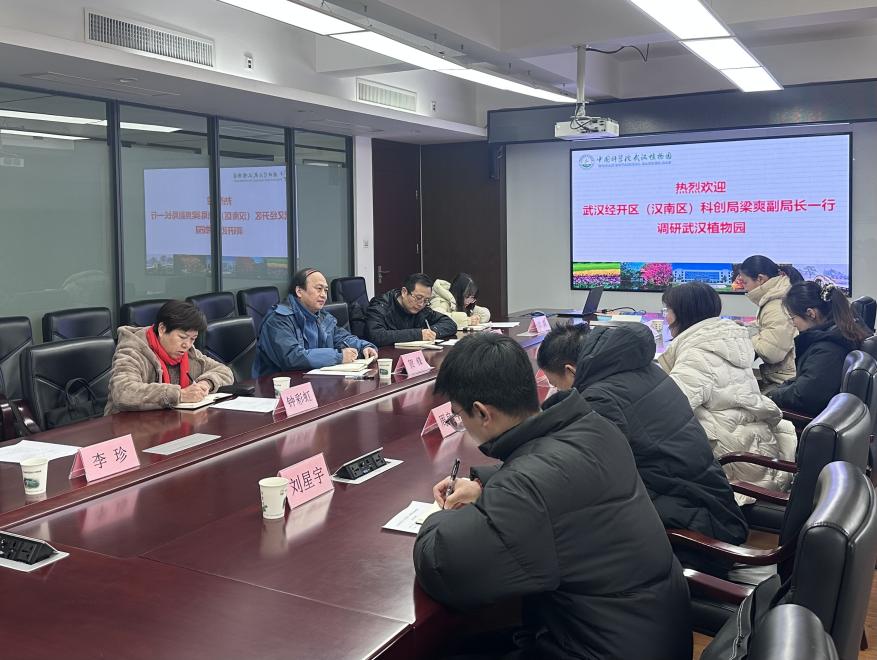 1月22日,武汉经济技术开发区(汉南区)科技创新局副局长梁爽,区农业技术推广中心、农业发展有限公司相关负责人调研武汉植物园。武汉植物园纪委书记贺锋,科研处及相关研究组负责人参加会议。