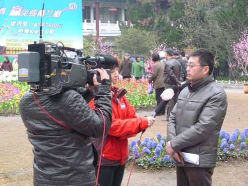 记者现场采访了武汉植物园总园艺师刘宏涛研究员,他介绍到武汉植物园今年共计引入92品种10瓣型29花色的郁金香品种资源,较以往更加丰富,色彩缤纷,更具观赏性。其中武汉植物园首次将40个品种多姿多彩的洋水仙、风信子、观赏葱、贝母、番红花等球根花卉组合布展,将单一展览提升为综合示范展览,力造全国球根花卉综合展示典范,同时2012年郁金香花展新增了四大看点。