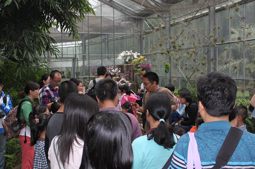 5月12日夜晚,武汉植物园会员专场“孩子,我们一起去夜游!”主题科普活动在景观温室举行。尽管下着瓢泼大雨,但活动依然吸引了50多个家庭及个人会员前来并兴致勃勃地体验了夜游的神奇。