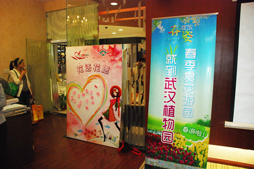 “春姿绽放,春季赏花游园就到武汉植物园”,为了提前为活动预热,活动宣传展板提前放到了新世界百货中心店。正值三八妇女节期间,新世界百货人流如织,宣传物料吸引了不少人的关注。不少高端女性将插花作为一种生活艺术,9日的主题沙龙活动中,武汉植物园组织专业插花师现场示范插花,带领众女性领略插花艺术。郁金香外形优雅、气质高贵,与当代女性气质不谋而合,受到众多女性的喜爱。活动现场,武汉植物园对郁金香花节做了推介,并且提供了40盆精美的郁金香盆栽送给了在场的女性。当日活动丰富多彩,“寻找自己的代表花卉”、“春节搭配诀窍”等精彩活动也引起踊跃参与。