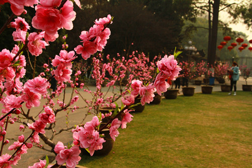新年到,桃花俏。春节期间,武汉植物园将展出400盆催花桃花,明艳动人的桃花分列道路两边,形成粉若云霞的桃花大道,还有十几株桃树组成的“桃花山”如霞似锦,分外迷人。游客不妨在桃花下许愿,祈祷好姻缘。武汉植物园展出的催花桃花主要品种为“迎春”,该品种为粉红色重瓣,花朵丰腴,花姿优美。“迎春”以盆栽的形式展出,经过园艺师精心的修剪,树干横斜有致,不仅可以赏花还可以赏枝干,整体造型非常优美。