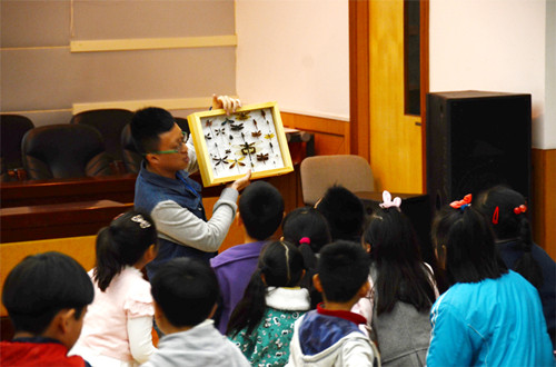 本次专家科普课堂在武汉植物园3号会议室举行,115名亲子家庭及高校学生参加了本次活动。张浩淼博士首先向蜻蜓爱好者介绍了蜻蜓的生物学分类及其特点,然后对蜻蜓生长环节及羽化、交配繁殖进行了着重的介绍。张浩淼博士还利用蜻蜓标本及图片,把一些鲜为人知的稀有品种展现在大家眼前,如蝴蝶裂唇蜓、丽拟丝蟌、赤基色蟌、低斑蜻等。据张博士介绍,中国是名符其实的蜻蜓王国,已知的蜻蜓种类近700种。目前,在武汉植物园发现的蜻蜓多达33种,它们栖息于植物园的各种池塘、湿地、东湖沿岸,其中,以美丽的蜻科物种和小型豆娘最为常见。