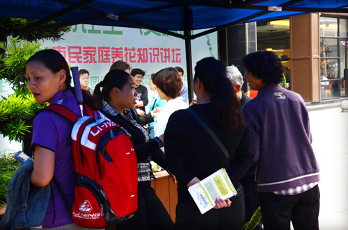 早上9时,“花博士”李俊皞面对众多热情的社区朋友,以通俗易懂的语言,告诉大家雾霾对人类健康有哪些危害?介绍了散尾葵、虎尾兰和绿萝能净化室内空气的科学依据及其养护方法,而后武汉植物园楚海家博士以轻松活泼的形式开展了现场互动环节,大家纷纷抢答,现场气氛十分热烈。