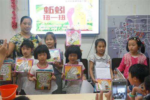 回到教室,孩子们分组对观察结果进行展示。孩子们通过汇报与大家分享探究的经验,比如,在哪里可以找到蚯蚓?蚯蚓有哪些有趣现象?蚯蚓的生长环境是怎样的?蚯蚓对种植植物的土壤所起的作用等等。通过观察,孩子们判断蚯蚓喜欢吃的食物有落叶,不喜欢“泡澡”,蚯蚓喜欢安静,当感觉遇到危险时,蚯蚓就会大幅度的扭动。最后,李老师代表武汉植物园向孩子们送上了节日的祝福和礼物。