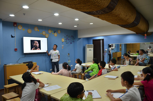课堂由楚海家博士主讲,分为室内介绍、走进密林、游戏体验三个环节。在室内,楚海家博士提出的“你曾经去过哪些森林?”作为引述,唤起了小朋友们对森林的记忆。虽然有的小朋友仅去过马鞍山森林公园、有的小朋友远足感受了西双版纳热带雨林的神秘莫测,但不管是人工雕琢还是保留有原始风貌的森林,小朋友们回忆起来都是欢欣雀跃的。在对森林的向往中,楚海家博士讲解了森林的作用,人类的起源与森林的关系、如何利用感官认识植物等知识,明确了本次课堂的目标及任务,并重点说明了部落游戏的流程及注意事项。接下来,小朋友们纷纷在脸上彩绘上“图腾”,打扮成原始野人的模样向着针叶林进发了。