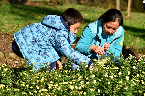 活动一开始,武汉植物园科普工作人员程老师为大家详细讲解了菊花的历史文化,菊花的5种瓣型和8大色色系、以及菊花丰富的品种资源。“菊花为什么冬天还会开花?”、“菊花的花瓣为什么有圆有扁?”、“为什么有的菊花正面和反面的颜色不一样?”,在小朋友的脑袋里,藏着关于菊花的十万个问什么。带着千奇百怪的提问,小朋友们踊跃地向老师提出问题。经过程老师的细心解答,参与活动的小朋友对菊花这种传统名花有了更丰富的认识。