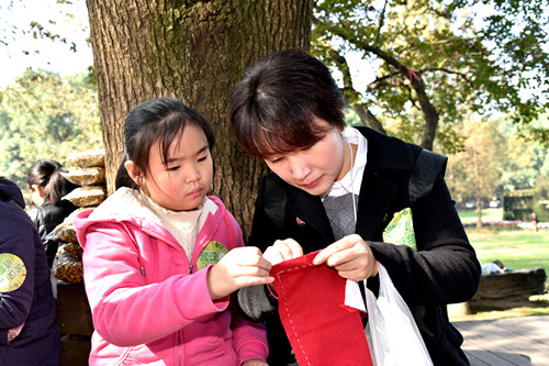 孩子的成长离不开与外界的交流与感知。手工DIY,不仅有助于孩子动手动脑的智力成长,而且能够利用大量的时间培养孩子耐心、细心的品质。11月27日上午,武汉植物园举行“亲子DIY菊花香囊”活动,这是“千菊秀资,靓扮金秋”金秋菊展自菊花插花、DIY菊花枕之后的第三次亲子活动。来自武汉晨报小记者团的15个家庭和武汉晨报旅游圈的15个家庭,以及湖北省旅游发展委员会征集来的5个家庭参与了本次DIY菊花香囊的活动。