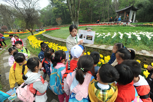 桃红梨白郁金香艳,正是春花竞放的季节,武汉植物园上百种花卉同时开放,园区已经成为花卉的海洋。武汉植物园以“花花世界 科学探秘”为主题,以春天开放的花卉为主要探究对象,通过植物定向体验学习、科学讲座、制作植物剪贴画、科学实验等方式,带领学生开展植物研学。