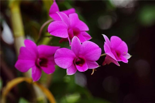 石斛原产地主要分布于亚洲热带和亚热带、澳大利亚和太平洋岛屿,全世界约有1000多个种。石斛花枝修长、亭亭玉立,花朵玲珑可爱、姿态优雅,花色鲜艳,气味芳香,被喻为“四大观赏洋花”之一。在泰国,石斛因为其清新高贵的气质被称为森林女神,在国外,石斛被视为父亲节的专属花,寓意父亲刚毅、亲切而有威严。
