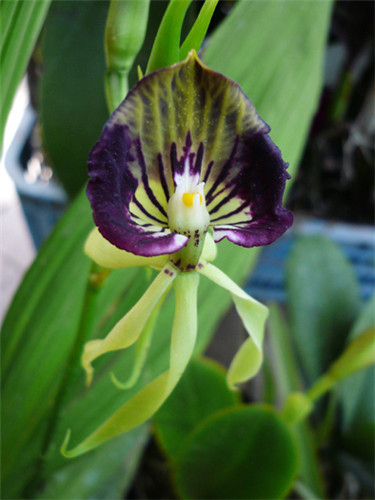 被称为颜色最深的兰花之一,它的花柱长而弯曲,状似天鹅颈部,花朵有着如黑色绸缎般的质感和颜色。