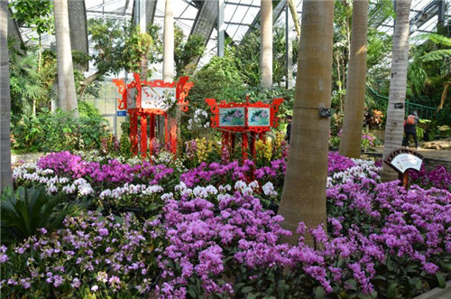 武汉植物园曾以“中国年”为主题,用大量的春节元素搭配热情洋溢的热带兰营造浓浓的新年氛围。