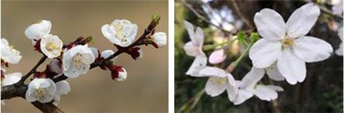 此外,杏花有个特点,所谓“一枝红杏出墙来”,“红”不是说杏花花瓣,而是指杏花的花萼。樱花也有个独特之处,樱花花瓣上有个缺,而其它花都没有,这也是樱花最好识别的特征。