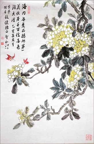 然而,仅据宋人的文字描述,我们仍未能真正认识琼花的真面目。幸好宋代画家曾绘过不少《琼花图》,其中一部分尚留传至今。如宋人韩佑的《琼花真珠鸡图》绘琼花一枝,锦鸡两只,雄者立于石上,雌者立于地下。琼花树叶色翠绿,花色洁白。仔细端详,可以发现树上的琼花多为一花九朵,确与聚八仙不同。