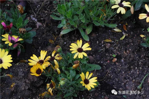 蓝目菊Osteospermum ecklonis (DC.) Norl.,又名非洲万寿菊、非洲雏菊、大花蓝目菊,花色极多,花大,植株低矮,很适合做观赏地被。