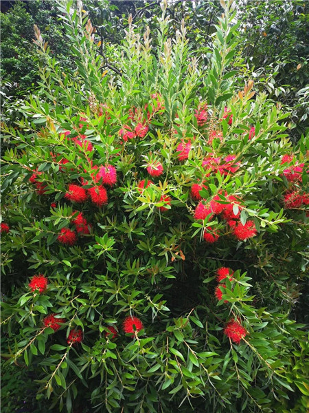 原来这种植物叫红千层(Callistemon rigidus),桃金娘科(Myrtaceae)红千层属(Callistemon)的常绿灌木或小乔木,因为圆柱形的穗状花序酷似瓶刷子,被称作瓶刷子树(Bottlebrush),不过它可比试管刷漂亮多了!
