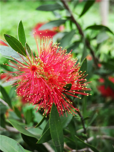红千层最具观赏价值的可不是花瓣,而是它的雄蕊!不信,你看黄色的花药还在上面呢!