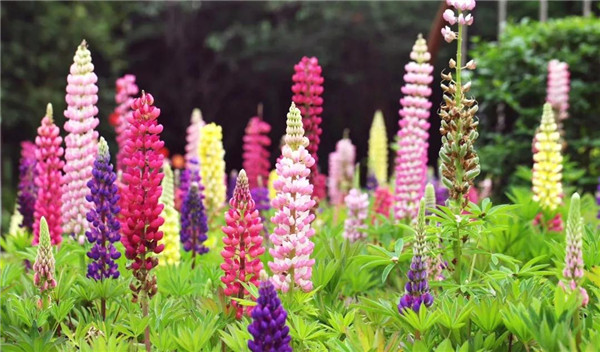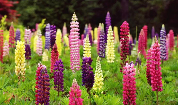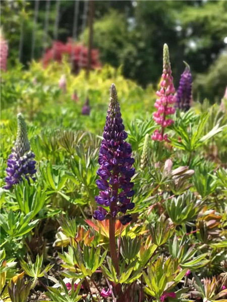 趁着假期,带妈妈出门赏花是不错的选择。有一种叫多叶羽扇豆的观赏花卉走入我们的视野,白色、红色、黄色、紫色……连成片的花儿如天上的彩虹般绚烂多彩,惹人喜爱。