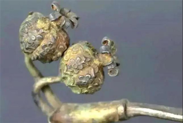 永安寺塔中收藏的鎏金石榴银簪(图片来自网络)