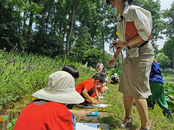 亲手创作一副博物画,寻找人与自然的链接。中科院武汉植物园博物画老师程嘉宝以萍蓬草为对象,带领孩子们创作博物画。观察特征、描摹、绘画,在孩子眼中,大自然是那么神奇。科学之真、自然之美与艺术之魅交融,孩子们度过了一趟奇妙的博物自然之旅。