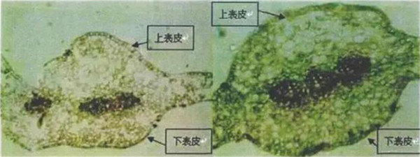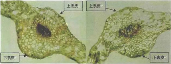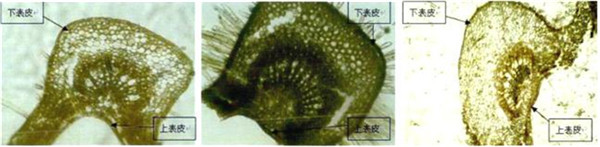 珙桐苞片与叶片不同时期横切面冰冻切片图(图片来源:参考文献2)