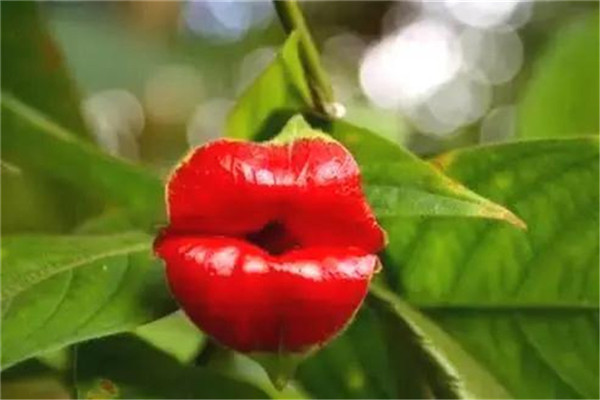 嘴唇花形似嘴唇的红色部分并非真正意义上的花瓣,而是花朵的苞片,颜色呈鲜红色,在鲜绿叶子的衬托下,特别美艳可爱,不少人看到图片都惊叹竟有这样的植物,是不是假的?
