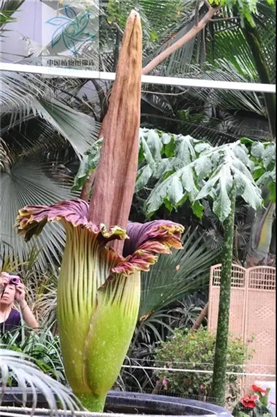 巨魔芋(Amorphophallus titanum),天南星科魔芋属植物,具有世界上最大的不分枝花序,并散发一股类似尸臭的味道,故又被称为“尸花”、“尸臭魔芋”。巨魔芋的花序开放时,佛焰苞内侧和肉穗呈绛红色,使整个花序看上去像个有着巨大伤口的动物躯体,令人觉得异常恐怖。