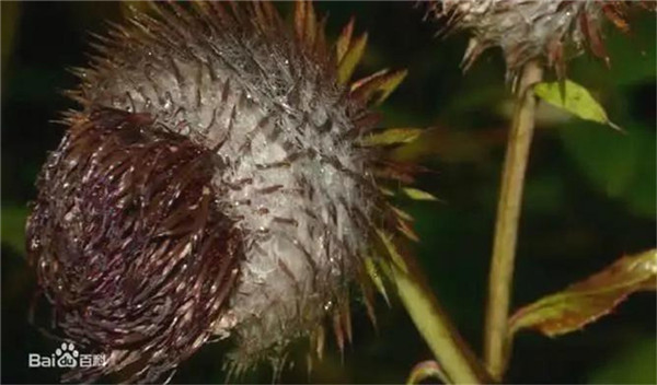 山牛蒡(Synurus deltoides),菊科山牛蒡属植物,生于山野,其根为中药材山牛蒡。山牛蒡头状花序较大,外部总苞片通常13-15层,向内层渐长,成球状托举之势,层层叠叠将里面的暗紫色两性小花托起,整体上看有一种“台阁”之感。
