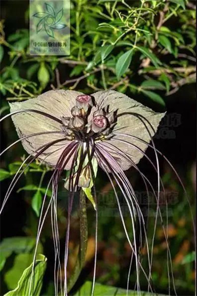 箭根薯(Tacca chantrieri),又名老虎须,是薯蓣科(Dioscoreaceae)蒟蒻薯属一种多年生草本植物。是热带雨林中一种引人注目的有花植物,它的花型花色都很独特,细状的小苞片长几十厘米,紫黑色,飘逸下垂,形如虎须,整个花序看上去像一张老虎的面孔,故名为“老虎须”,是集赏花、观叶、药用为一体的珍稀植物。