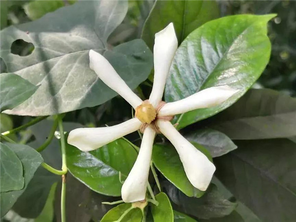 茜草科栀子属的栀子花有单瓣和重瓣变种白蟾等等,最为常见的观赏用栀子花为重瓣,称为“大花栀子”。而古代应用居多的是单瓣栀子花,花瓣六片,称为“山栀子”。其特征是花瓣中间有一个高高的管状花心,旁边深展出六根花蕊,其果实常可入药或用于染就黄色。