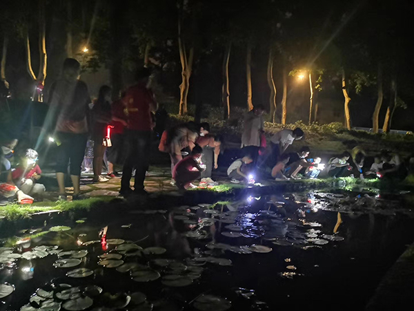 “夏夜的奇趣冒险——夜游植物园”是武汉植物园联合自然教育机构,根据夏季的特色、深入开发武汉植物园的自然资源、组织对象开展深度自然体验的自然教育和科学教育活动。在7月至9月的每个周末夜晚不定期举办。活动既保留了植物认知的传统项目,又增添了动物与昆虫的探究,更加全面地展示了自然界的丰富多彩,增强孩子对自然界的认识,为孩子们增加了深刻而丰富的自然体验。
