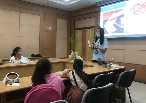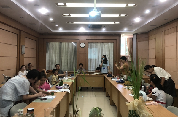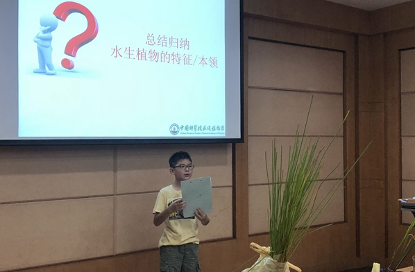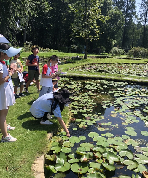 盛夏时节,中科院武汉植物园内各类水生植物摇曳生姿,美不胜收,然而水中的环境与陆地不同,这些植物在水中安然无恙,究竟有什么神奇的生存法宝呢?8月1日,武汉植物园自然课堂迎来了8组亲子家庭,在主讲老师张凡和助教老师袁俊青的带领下,一起探秘水生植物的生存秘密。课堂分为室内讲解、室外探究、总结归纳、小游戏几个环节。