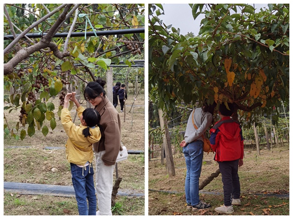 接着来到户外,老师带领大家走进武汉植物园国家级猕猴桃种质资源圃,通过果实拍照游戏,近距离用心观察着各种各样的猕猴桃,“老师,我发现了一种猕猴桃,长的好大呀”,“老师,我观察到一种猕猴桃,长的像小黄瓜”,“老师,我也发现了一种猕猴桃,和平时见到的都不一样,长的像指头肚一样小,果皮上还有很多点点”......孩子们十分兴奋,快乐的分享着自己的发现。