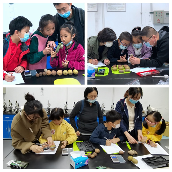 观察结束,各小组顺利领取猕猴桃果实,回到实验室,通过观察、测量、称重以及品尝等方法全方位的进行果品测定。孩子们认真测评,开心品尝,既锻炼了观察与动手的能力,又亲自体验了科学家考种的过程,最终都喜悦的完成任务,成功找到了目标猕猴桃。