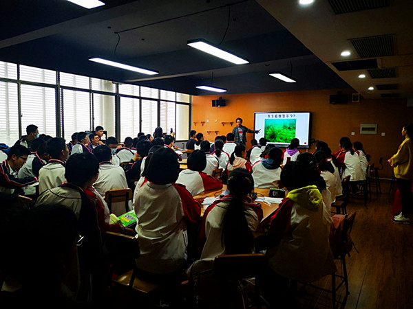 11月4日,“水生植物知多少”研学课程走进华中师范大学第一附属中学。主讲老师操瑜博士和助教老师袁俊青为高一和高二年级的60名学生带来了一场生动活泼的自然课程。