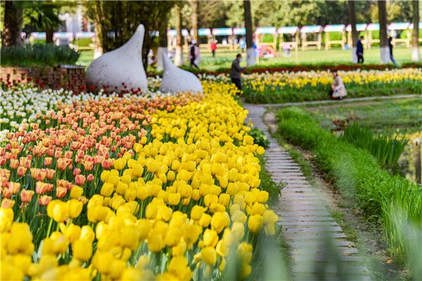 目前,武汉植物园各个展区的郁金香都处于最佳观赏期。郁金香花展预计持续到4月上旬。