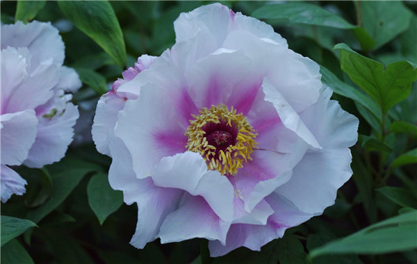 湖北保康野生牡丹最先掀起牡丹的赏花大幕,保康牡丹以白色、粉白色居多,如霞似雪,馨香袭人。保康牡丹花朵多顶生,花朵凌于叶片之上,朵朵白雪汇成花海,其飘逸的姿态轻逸出尘,一展牡丹的婉约风姿。