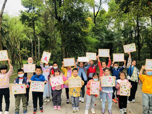 “大约在一千九百年前的东汉时代,蔡伦吸收了前人长期积累的经验改进了造纸术”,小学三年级语文课文《纸的发明》激发了孩子们对造纸术强烈的好奇心,蔡伦具体如何改进了造纸术?造纸术的每一个环节是怎么样的?粗壮的树木是如何变成一张薄薄的纸的?带着这些问题,主讲老师引导孩子们在园区内寻找适合造纸的原料植物之一——构树,并观察其外观及树皮,引发思考;接着,在室内以深入浅出的方式讲解,让孩子们了解了古人书写用材的发展、造纸术的发明及发展历史,感受了古人无穷的智慧;揭秘了造纸术的神秘面纱后,老师为孩子们展示了整个工艺流程并给大家发放物资,孩子们动手操作着,用心地打浆、搅拌、架框、铺浆、沥水,并用户外拾到的花草进行装饰,让孩子们亲身体验了“古法造纸”的奇妙过程。活动现场气氛活跃,教室俨然变成了一个“造纸小工厂”,大家拿着自己的成果,内心充满了自豪和成就感。