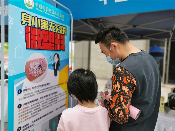 微塑料是尺寸小于5毫米的塑料,它小到不起眼却危害无穷,容易被生物体误吞食,对水生生物的健康和生存构成严重的威胁。启动仪式现场,武汉植物园设立科普展位,以“身小害无穷”的微塑料为主题,在展区内利用精心制作的科普展板、科普知识手册、科学实验等,向现场公众普及科学知识,倡导科学生活。