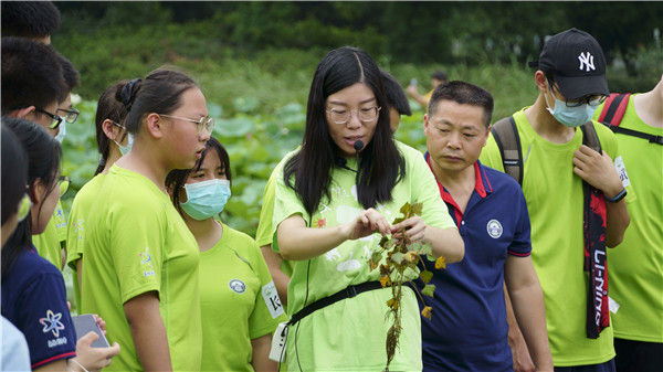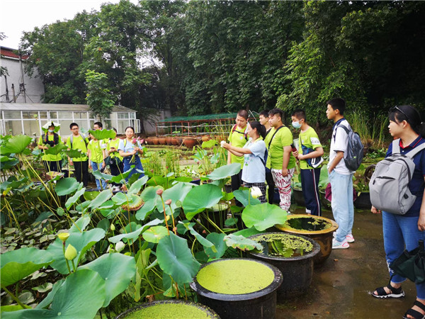 草木葱茏、莲香满塘,7月的武汉植物园正展现迷人风姿。营员们在科学导师的带领下初识植物园,分组探秘了景观温室、沉水植物区、药园等植物专类园,领略了武汉植物园优美的自然风光和丰富的植物资源。