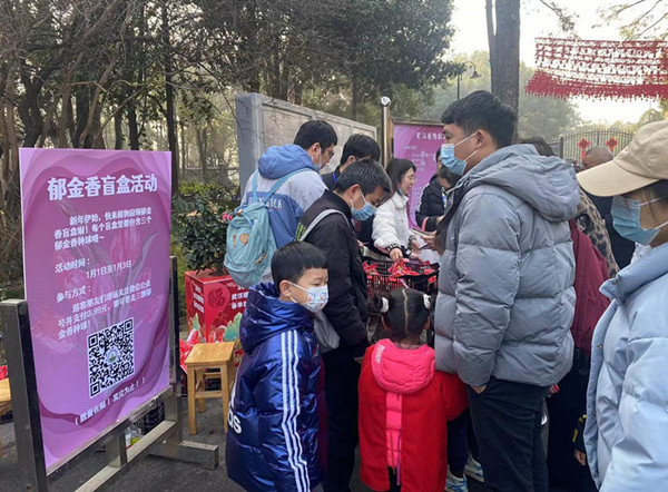 鹦鹉型、酒杯型、百合型,红色、黄色、白色,武汉植物园为游客准备了不同花型不同颜色和不同花期的郁金香种球。他们被包装在有虎元素图案的“盲盒”袋中,一颗颗像“大蒜头”一样的种球虎头虎脑、非常可爱。1月1日早上9点,武汉植物园已经陆陆续续迎来了一批批游客。游客们为体验种植乐趣纷纷来到活动处积极参与换购活动,期待3月春暖花开时,郁金香带来的惊喜。