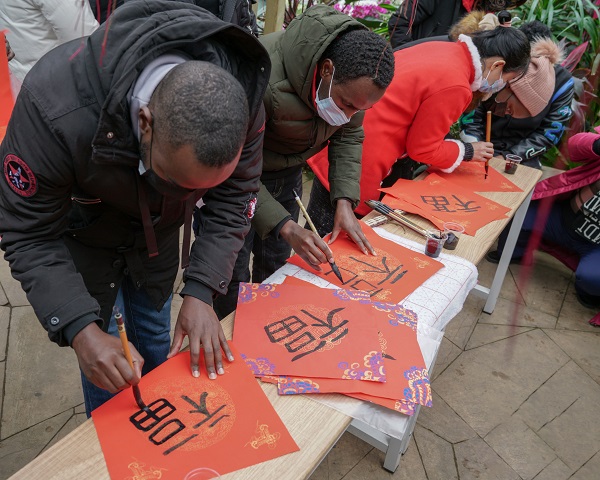 “新年快乐!”1月26日正值南方农历小年,来自武汉植物园的16位留学生团聚在一起,用写福字、吹糖人、挂中国结、赏花的方式共度小年。他们在各种小年习俗中感受浓浓的中国年味,体验了地道的中国年。