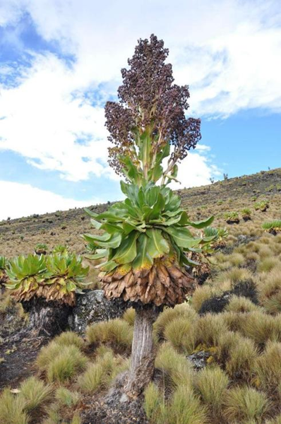 同样是耐寒高手,美丽的大苞硕莲选择用苞片把里面的花包裹得严严实实,以躲避高山夜间的严寒。高达2.5米的身姿也让它们在非洲高原上异常显眼。
