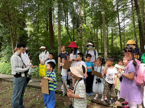 鸟儿是人们身边最容易观察到的野生动物之一,是大自然美好的信使。在观鸟老师带领下,孩子们学习了科学观鸟的基础知识,他们在植物园内畅游,尽情观察和欣赏嬉戏在湖里的黑水鸡、鸊鷉以及跳跃在枝头的乌鸫等野生鸟类。观察后,孩子们通过文字和绘画方式,记录观察到的鸟类和自然场景,进行自然笔记创作。