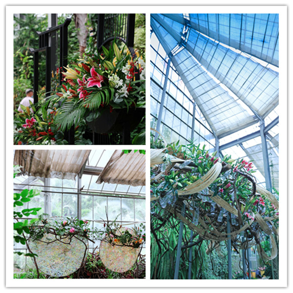百合花展的展览地点在景观温室,这里绿树葱茏、瀑布飞泻、奇花异卉斗艳,热带风光撩人,在百合的点缀下更显繁华似锦,生机盎然。