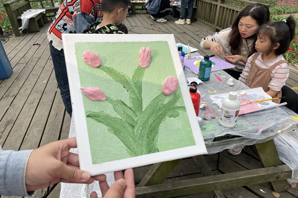 3月推出“郁见美好”郁金香肌理画活动,游客们一起踏入花海,画一幅郁金香肌理画,用颜料将这浪漫封存,把烦心事丢掉,腾出的地方放满郁金香。