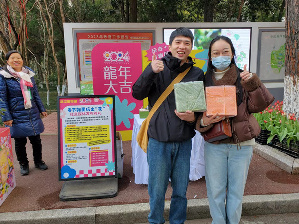 花影香韵迎新岁,正是游园赏春时。大年初一到初八,游客来武汉植物园拍美照,参与“春节玩出花”抽奖活动,可就有机会抽取花朵主题礼盒、玫瑰花束、花卉明星片等奖品。