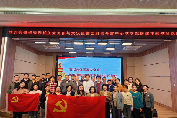4月17日,武汉植物园科普开放中心党支部与中国科学院武汉病毒研究所微生物资源与生物信息研究中心党支部、新发传染病研究中心党支部、郑店实验室党支部、支撑党支部共同开展了“总体国家安全观·创新引领10周年”主题党日活动,合计30余名党员参加活动。此次活动旨在共同学习贯彻总体国家安全观,加强双方党支部之间的交流合作。
